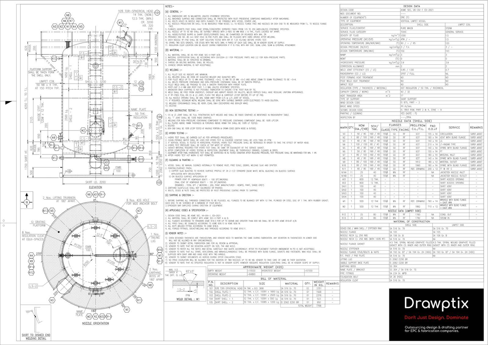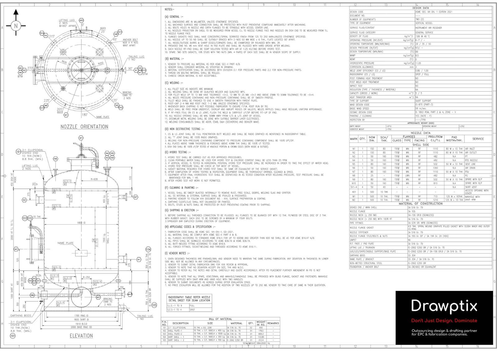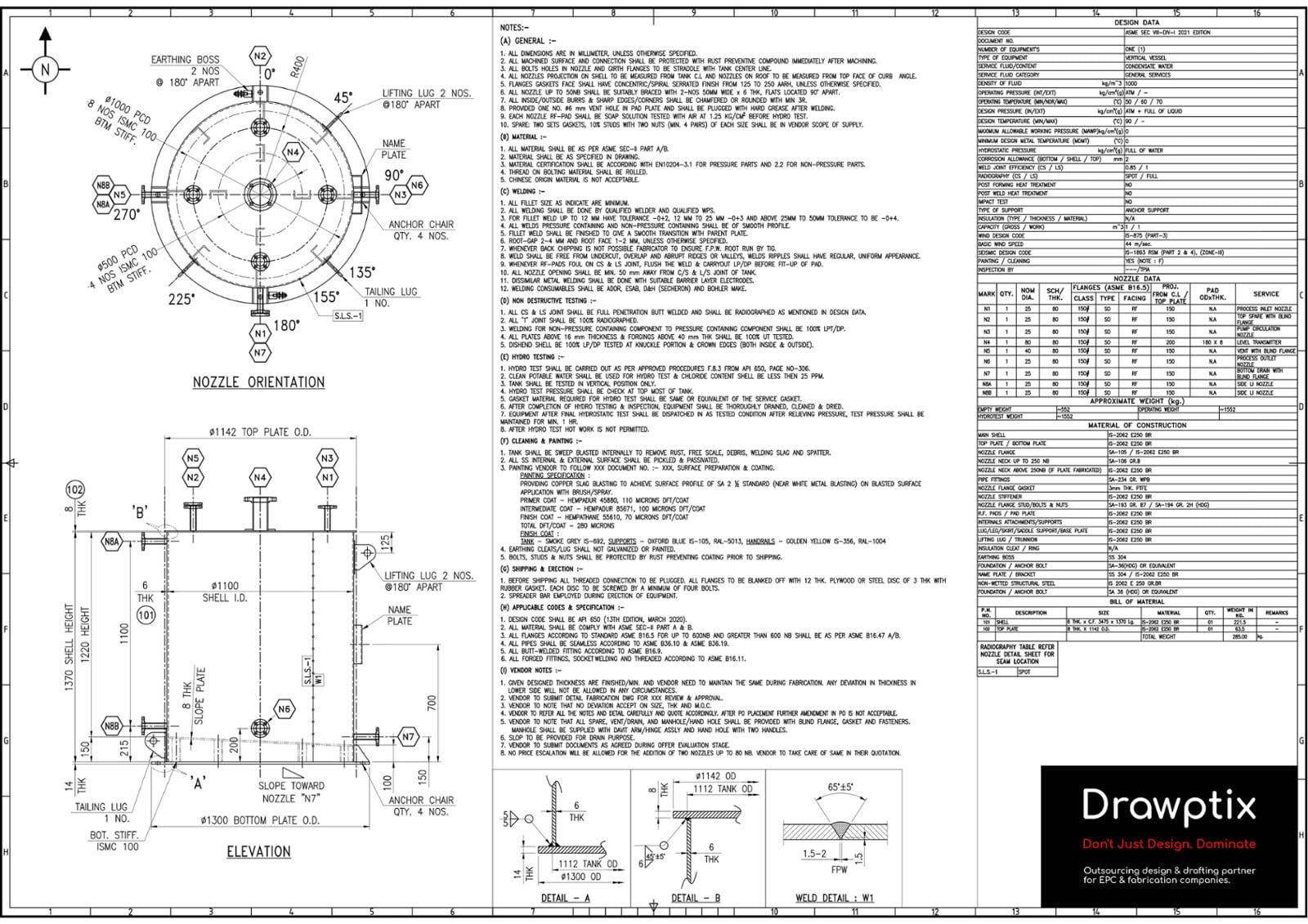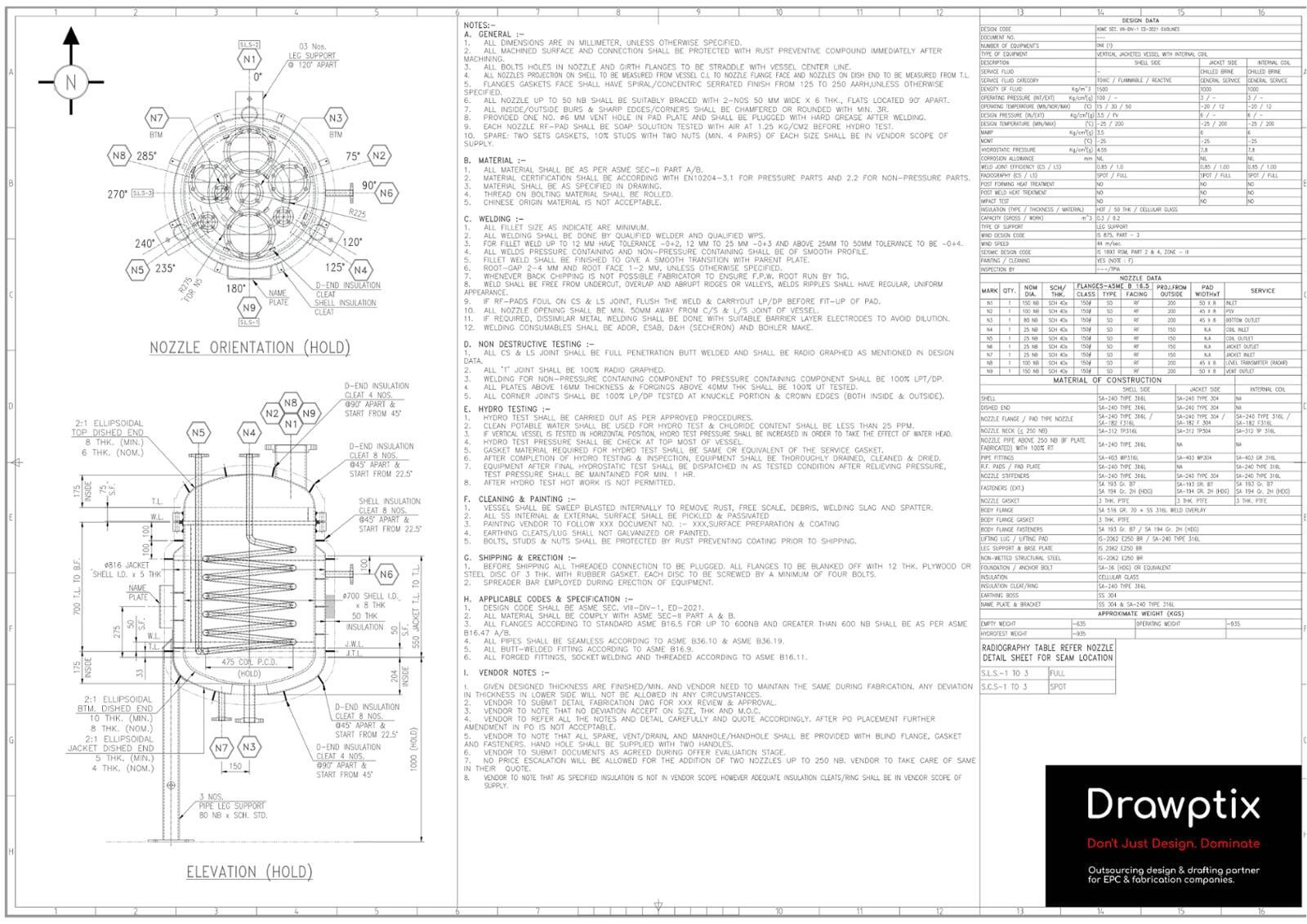 pressure vessels, heat exchangers, storage tanks, fabrication drawings,