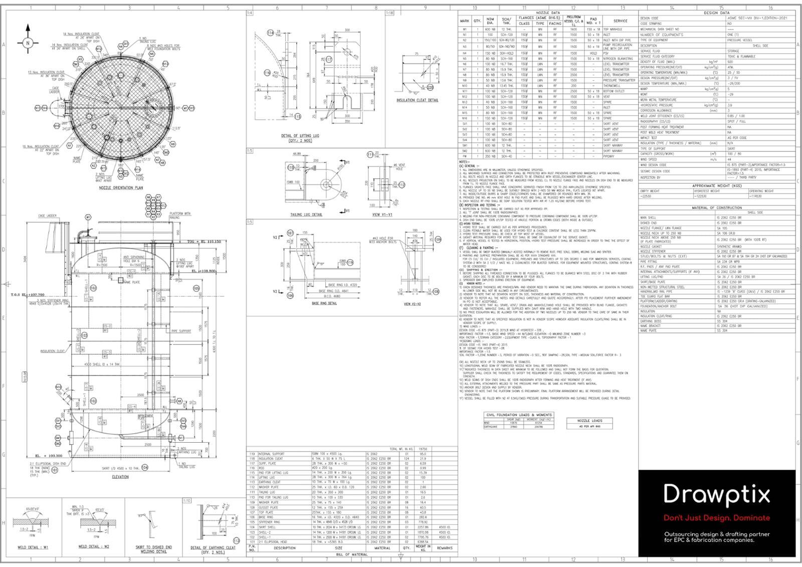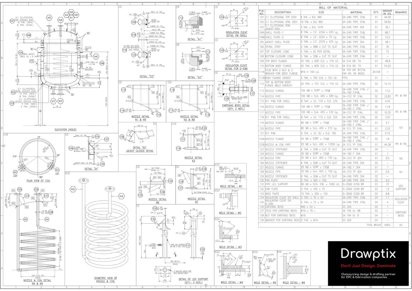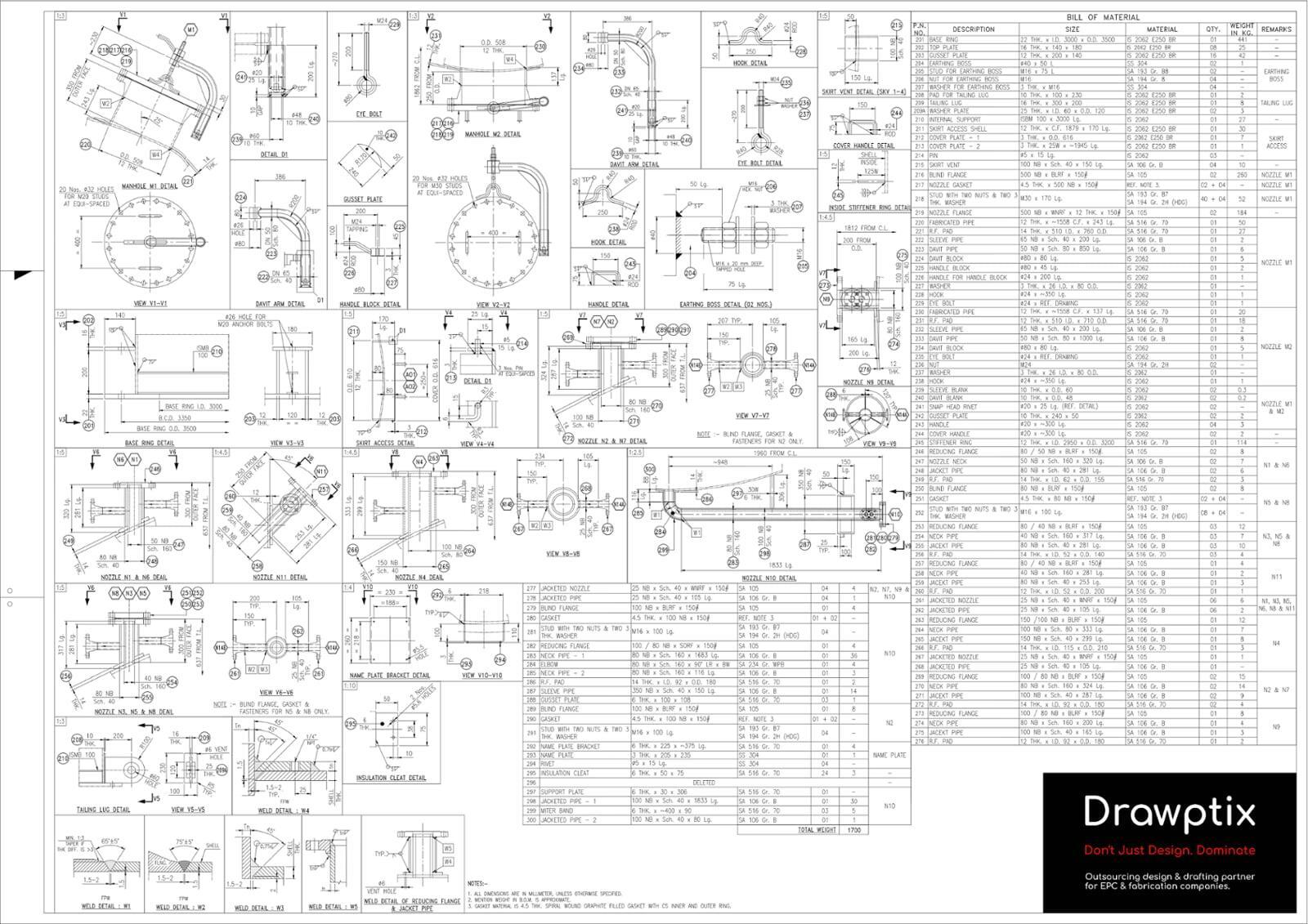 pressure vessels, heat exchangers, storage tanks, fabrication drawings,