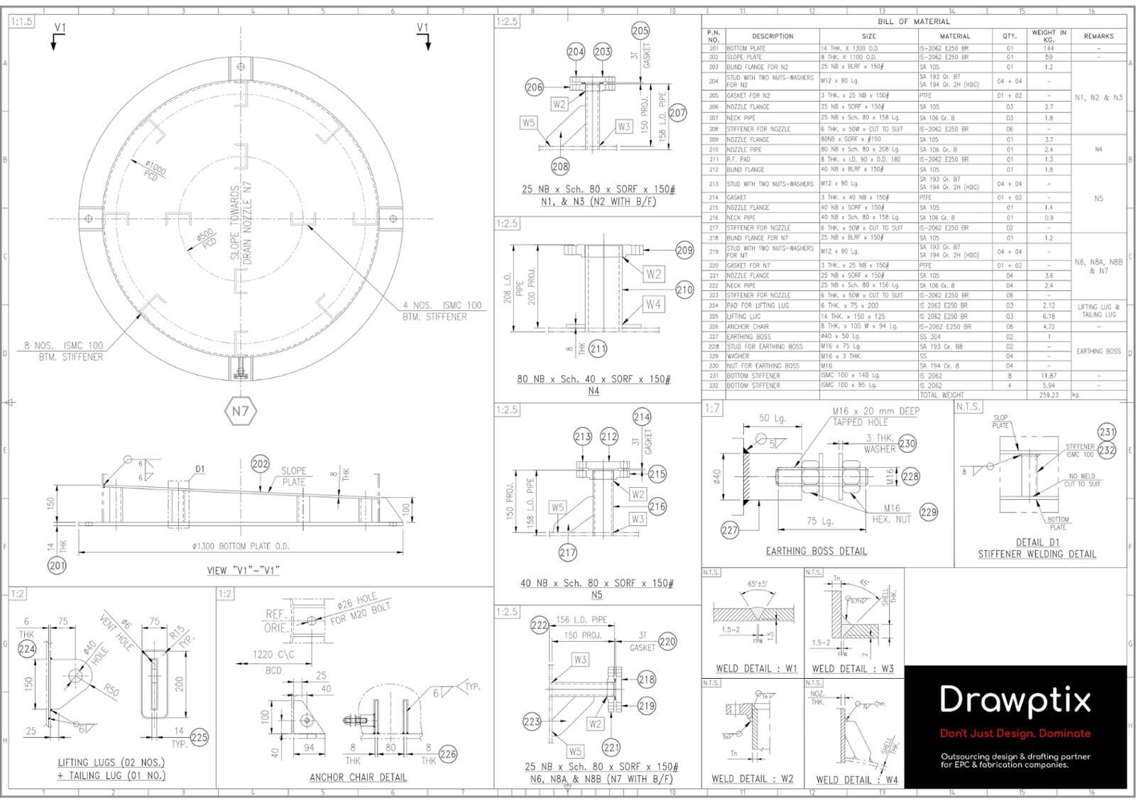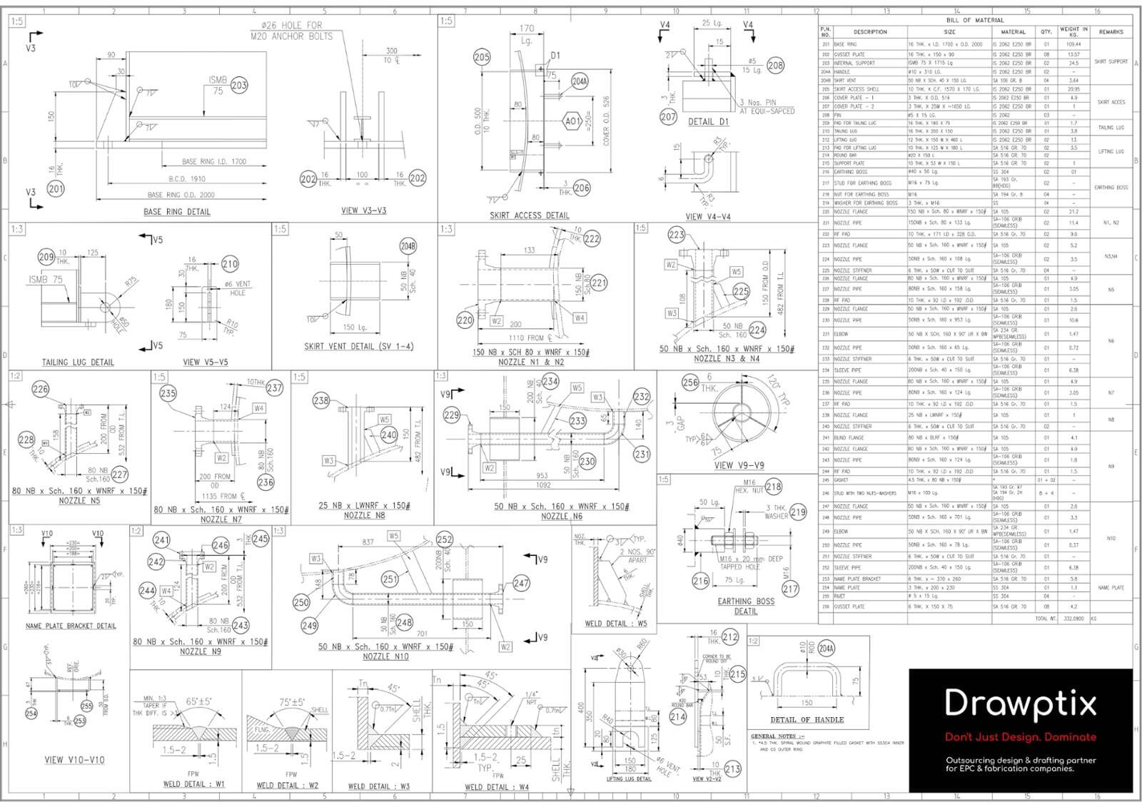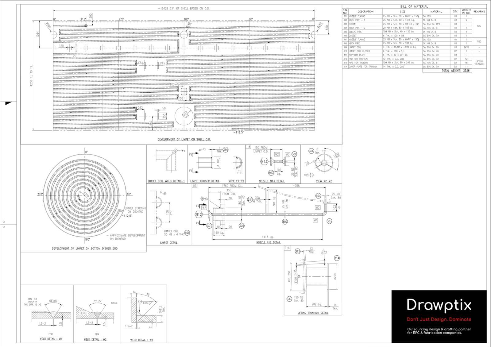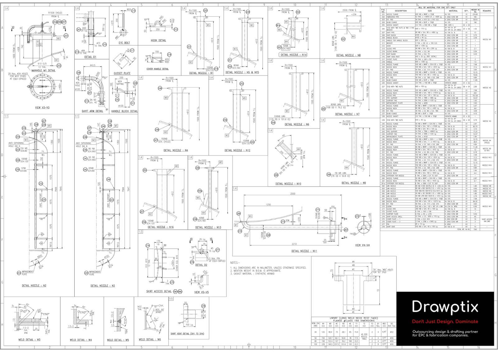 pressure vessels, heat exchangers, storage tanks, fabrication drawings,